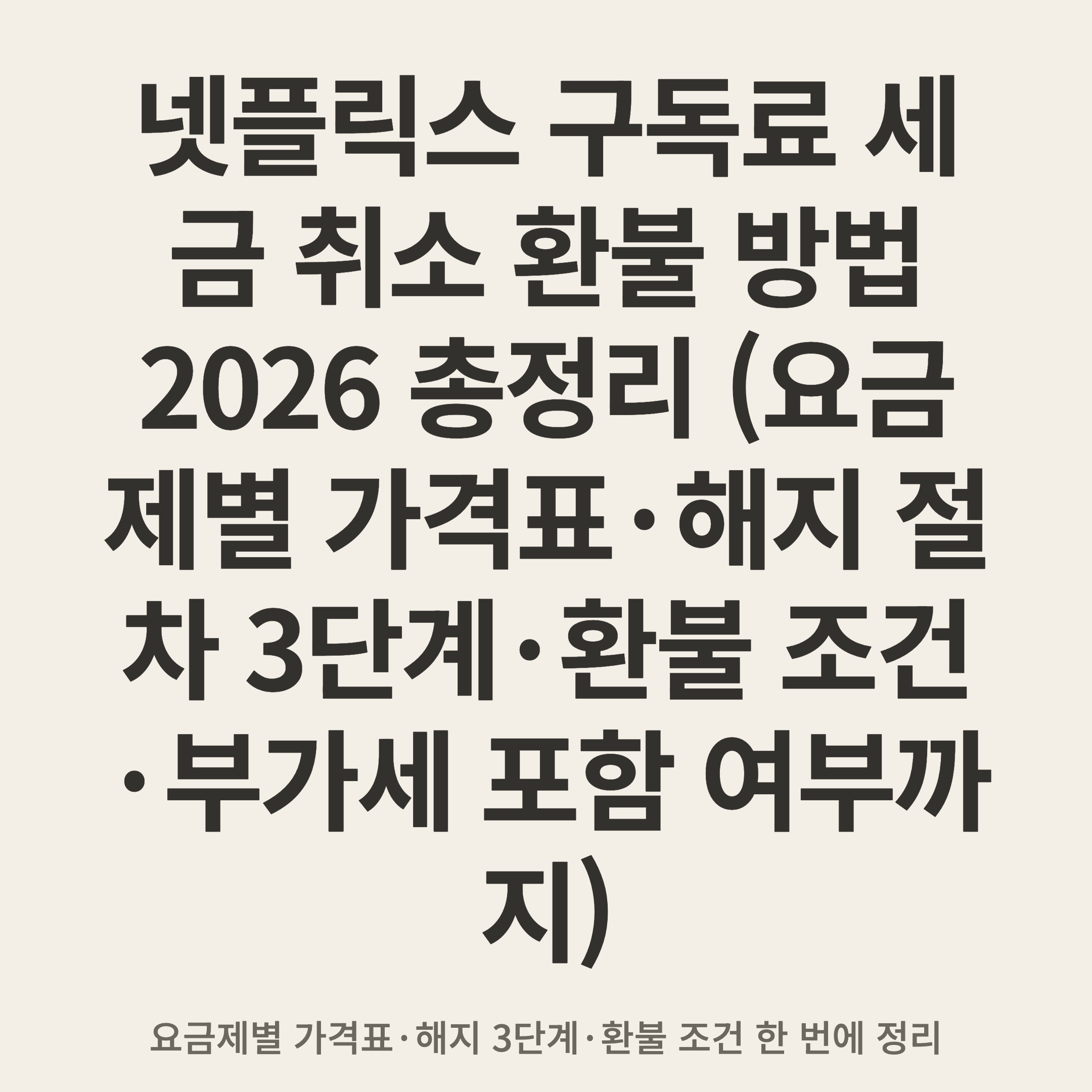 넷플릭스 구독료 세금 취소 환불 방법 2026 총정리 (요금제별 가격표·해지 절차 3단계·환불 조건·부가세 포함 여부까지)
