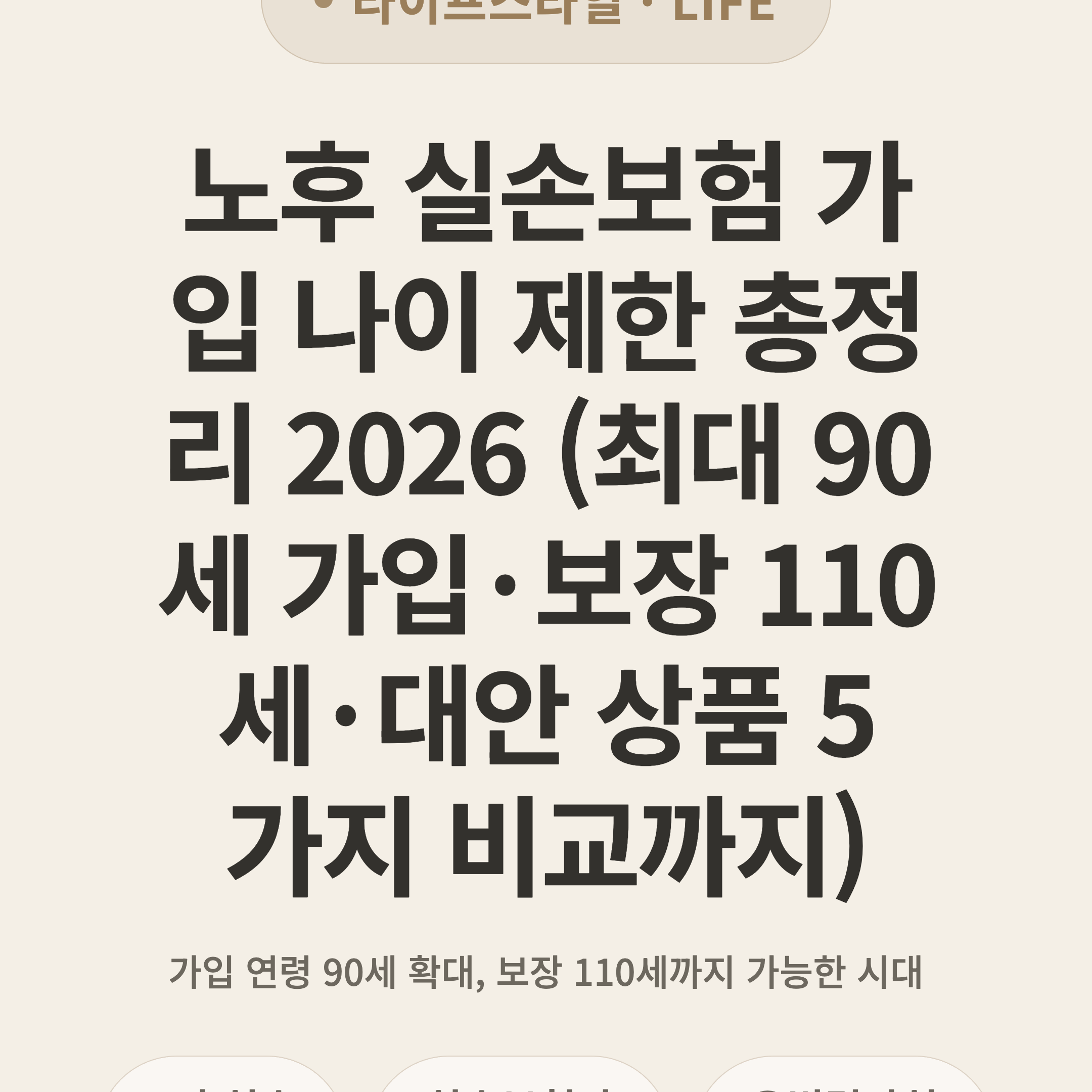 > ⚡ 3초 요약 > 2026년 기준 노후·유병력자 실손보험 가입 연령이 기존 70~75세에서 최대 90세까지 확대, 보장 연령도 100세에서 110세로 확대되었어요. 건강 상태 기준 충족 시 고령자도 가입 가능하며, 가입이 어려운 경우 간편심사보험·저축형 간병보험 등 대안 상품을 활용할 수 있어요.
