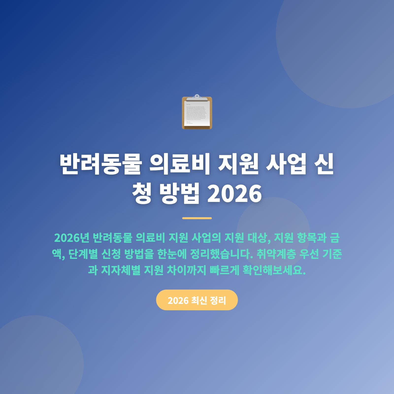 반려동물 한 마리 키우는 데 연간 병원비만 수십만 원씩 나간다는 이야기, 한 번쯤 들어보셨죠? 특히 20~30대 1인 가구와 취약계층에게는 갑작스러운 수술비가 큰 부담이 되곤 해요. 이 글에서는 2026년 반려동물 의료비 지원 사업의 자격 요건, 지원 금액, 신청 절차까지 한 번에 정리해드릴게요. 📌
