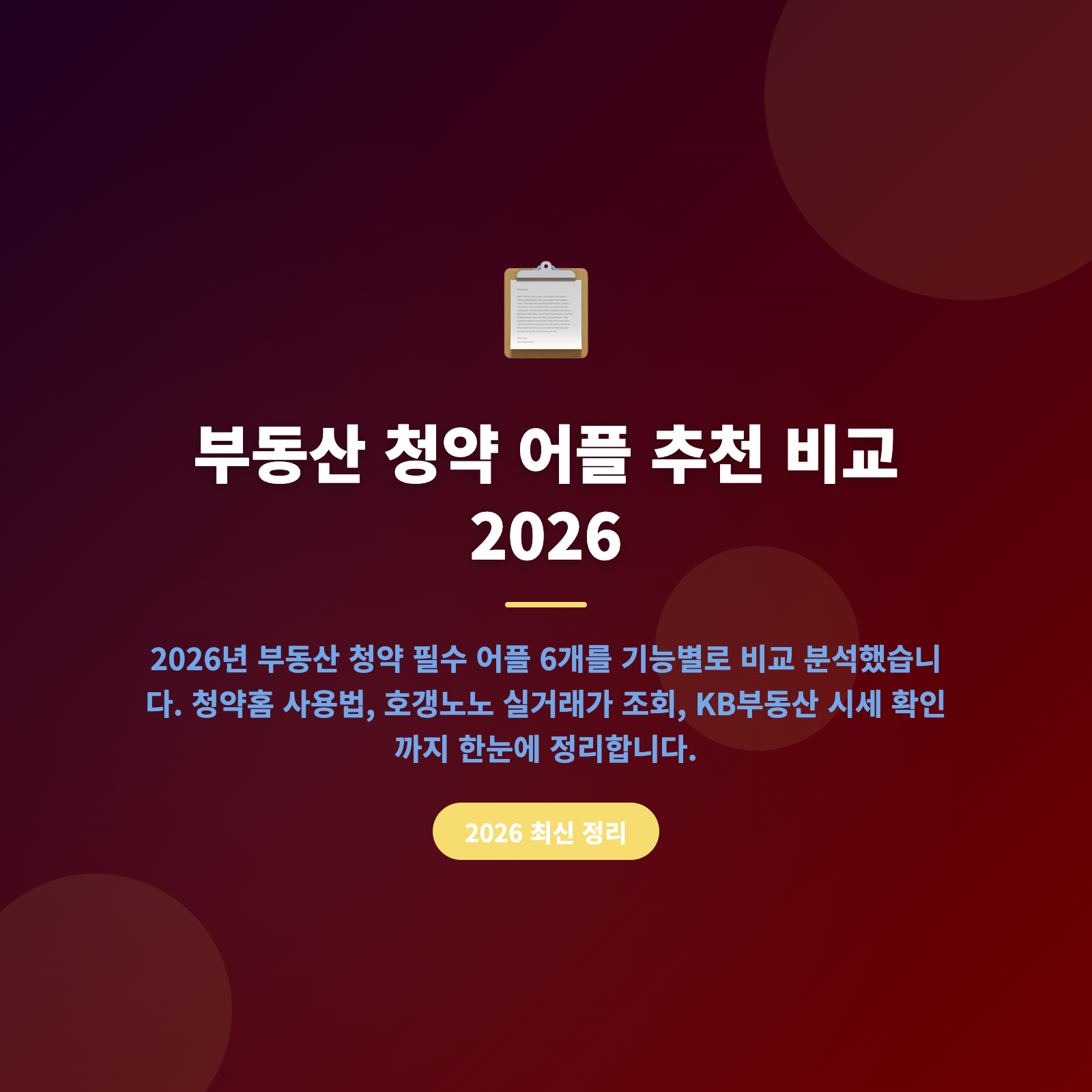 1. 2026년 필수 청약 어플 6개 한눈에 비교