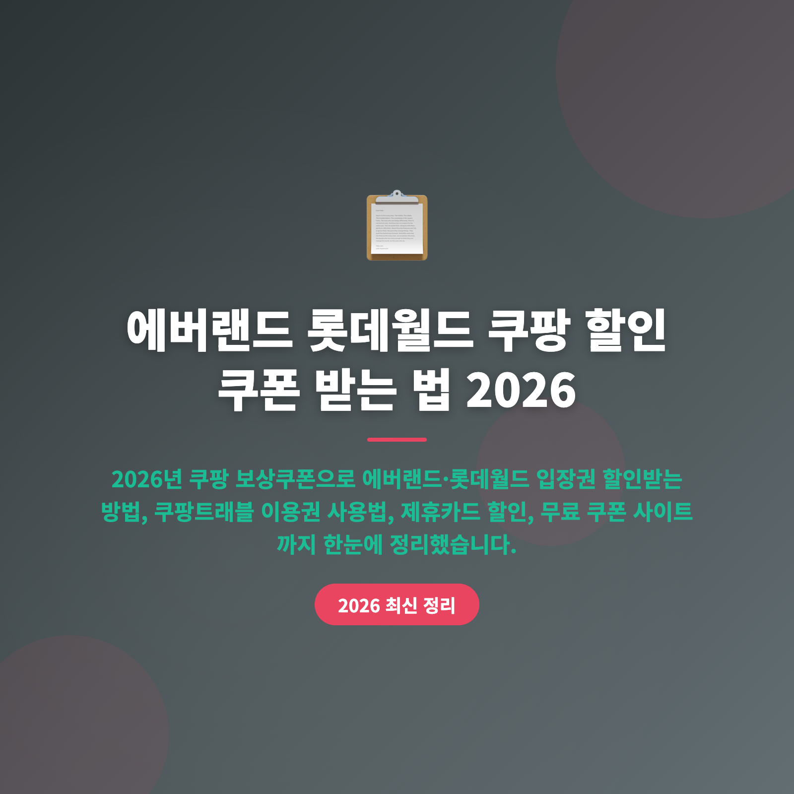 에버랜드 정가 59,000원, 롯데월드 정가 62,000원—가족 4명이면 입장료만 24만 원이 훌쩍 넘어요. 그런데 쿠팡 쿠폰 하나로 이 비용을 확 줄일 수 있다는 사실, 알고 계셨나요? 이 글에서는 2026년 쿠팡 보상쿠폰·트래블 이용권·제휴카드 할인을 활용해 에버랜드와 롯데월드를 최저가로 즐기는 방법을 단계별로 알려드릴게요.