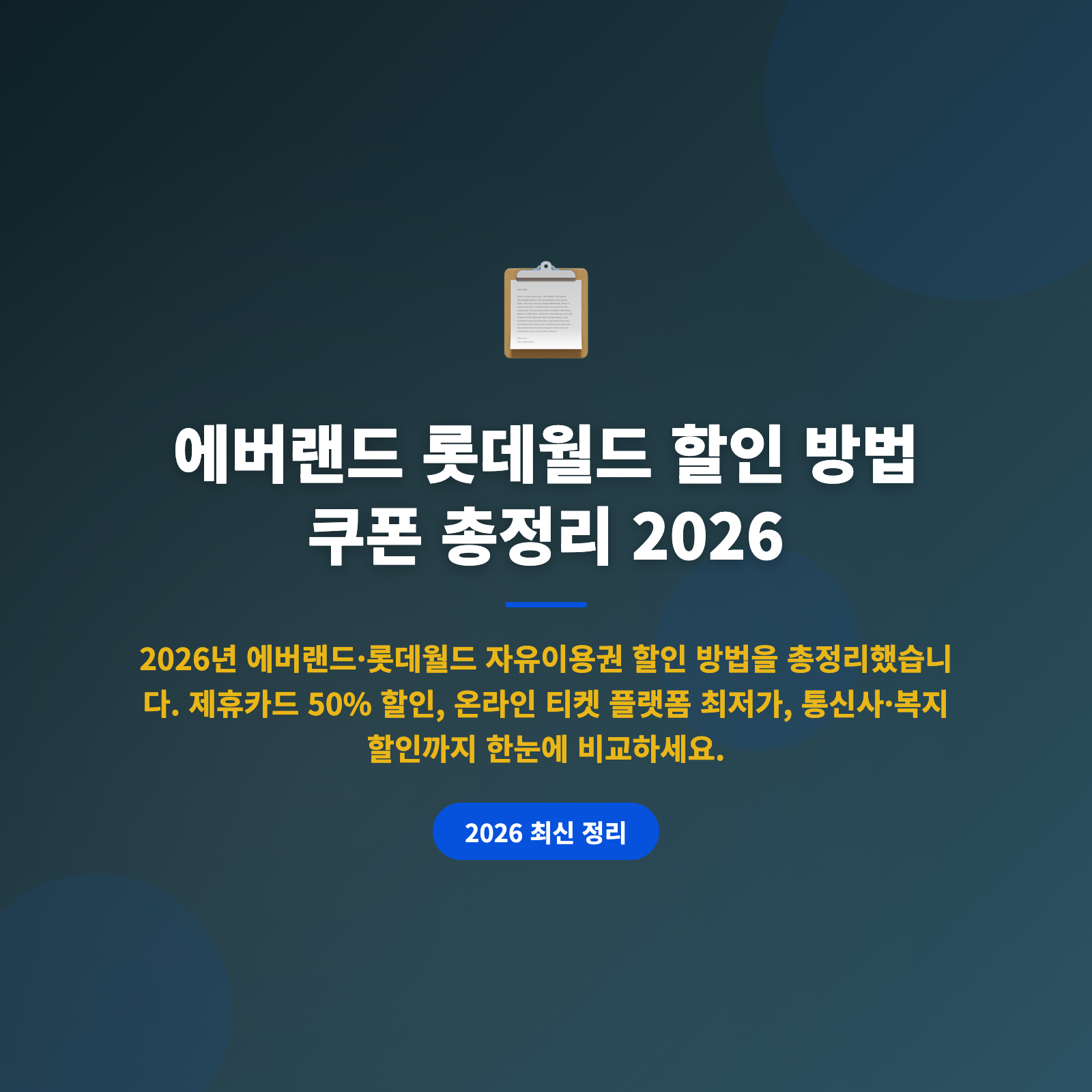 놀이공원 한 번 가려면 입장료만 수만 원, 혹시 정가 그대로 내고 다녀오신 적 있으신가요? 사실 제휴카드, 통신사 할인, 온라인 티켓 플랫폼만 잘 활용해도 최대 50%까지 아낄 수 있어요. 이 글에서는 2026년 기준 에버랜드와 롯데월드의 자유이용권 가격부터 제휴카드 할인, 쿠폰 사이트, 단체 할인, 시즌별 프로모션까지 한 번에 정리해드릴게요.