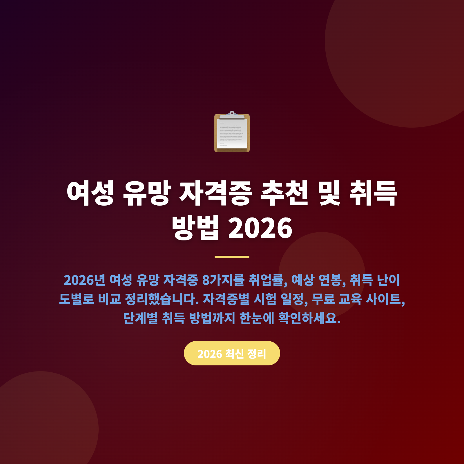 1. 2026년 여성 유망 자격증 한눈에 비교 💡