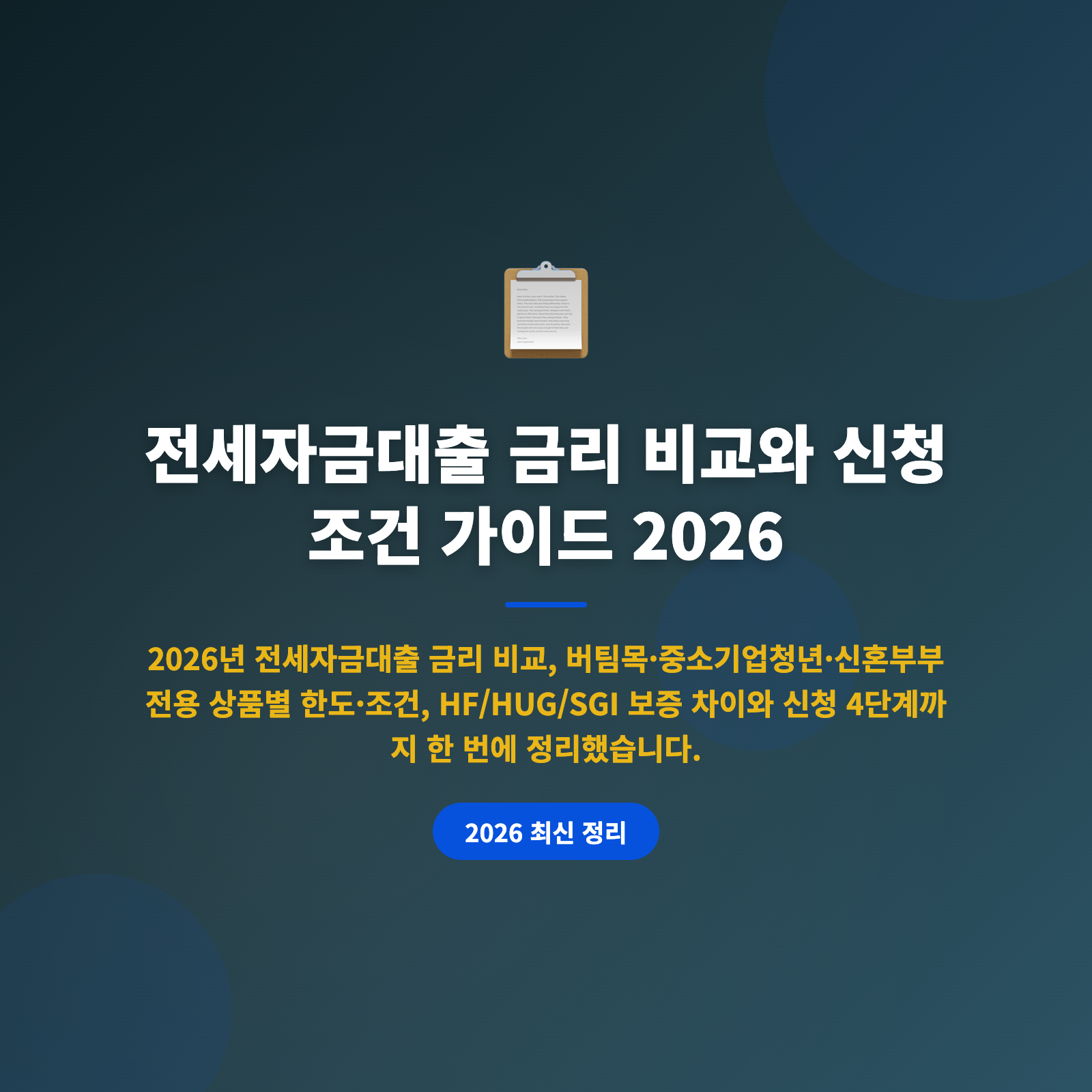 ✅ 2026년 전세자금대출 핵심만 딱 정리해 드릴게요.