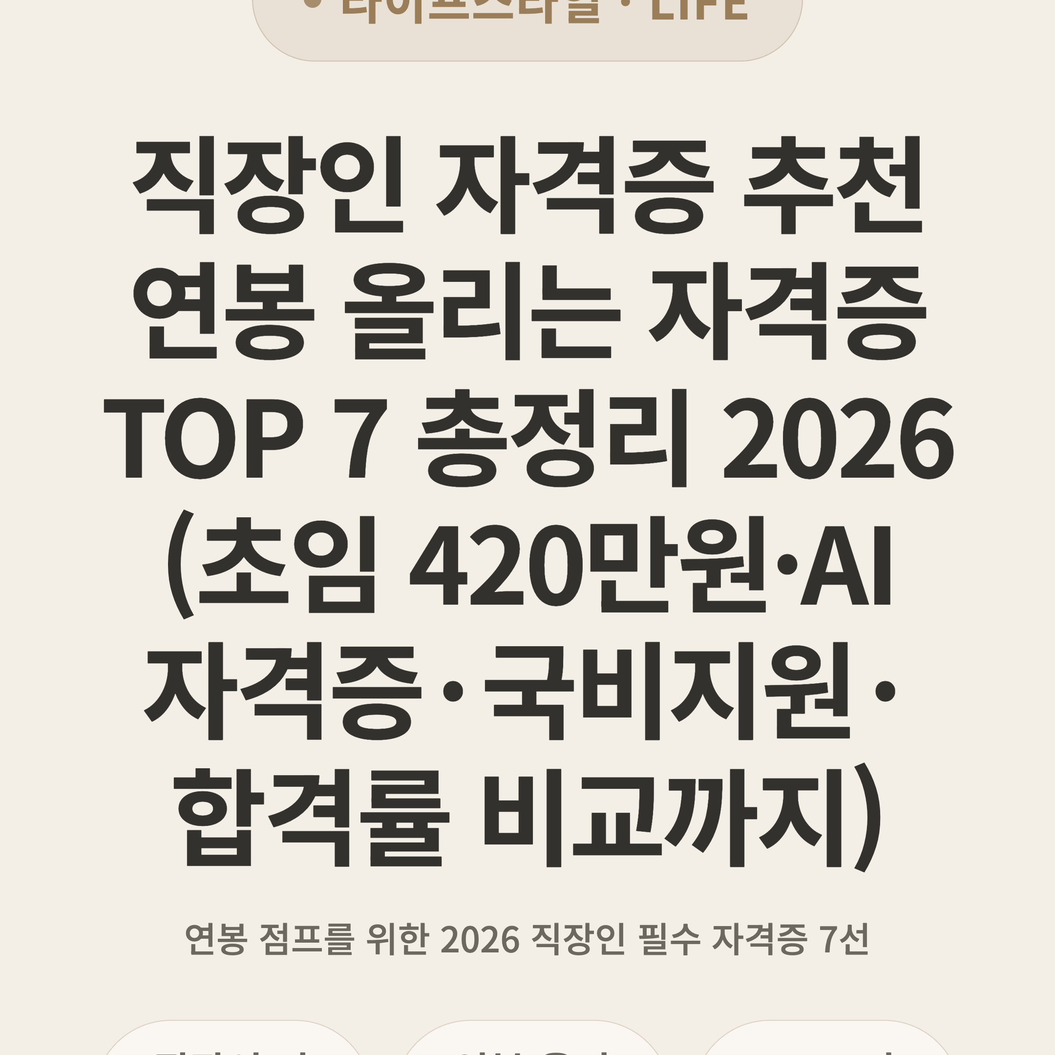 직장인 자격증 추천 연봉 올리는 자격증 TOP 7 총정리 2026 (초임 420만원·AI 자격증·국비지원·합격률 비교까지)