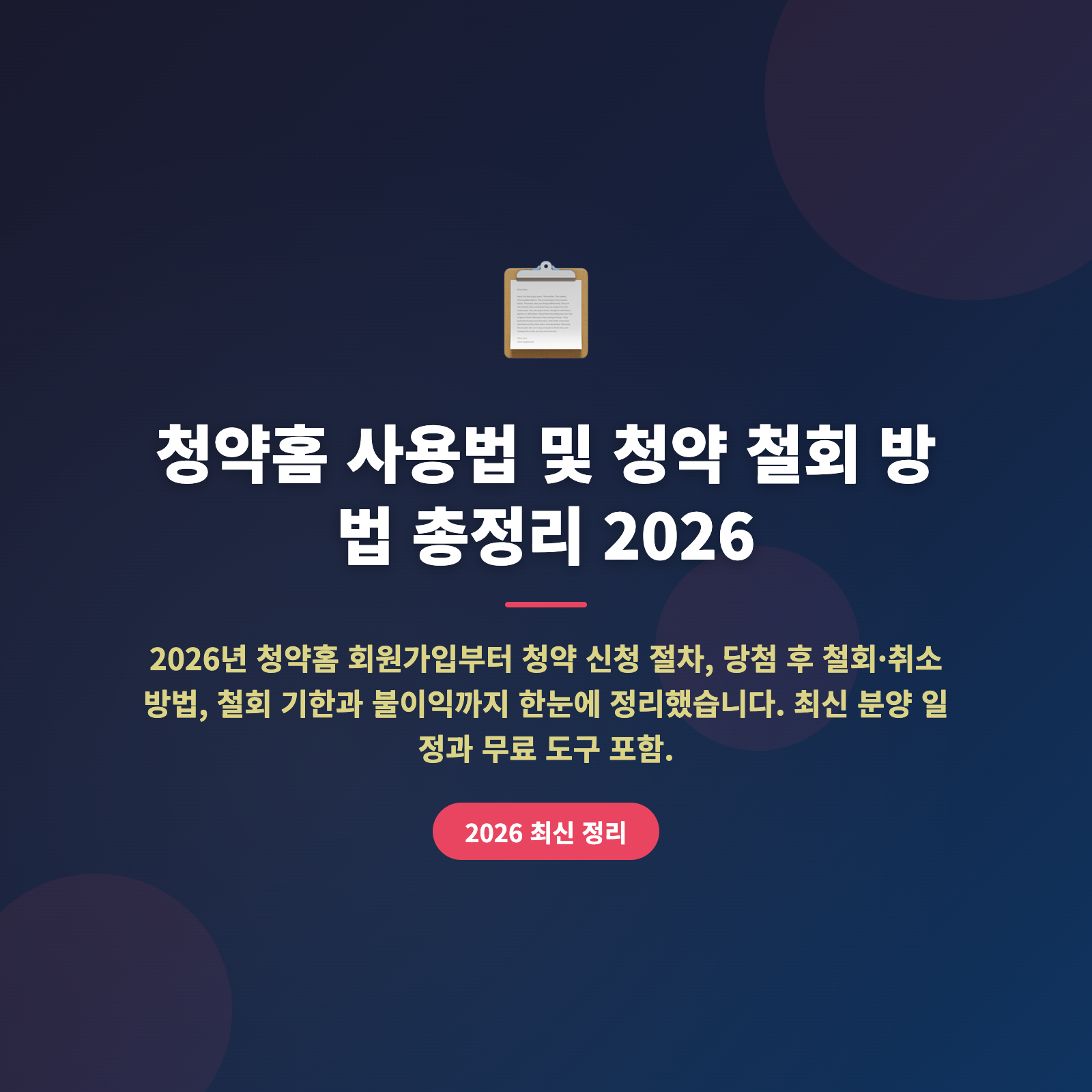 "청약 넣었는데 취소할 수 있나요?" — 요즘 MZ세대 사이에서 가장 많이 검색되는 부동산 질문 중 하나예요. 막상 당첨됐는데 자금 계획이 달라지거나, 실수로 중복 청약을 해버린 경우 어떻게 해야 할지 막막하죠. 이 글에서는 청약홈 회원가입부터 청약 신청, 그리고 가장 궁금한 청약 철회·취소 방법까지 2026년 최신 기준으로 빠짐없이 정리해드릴게요.