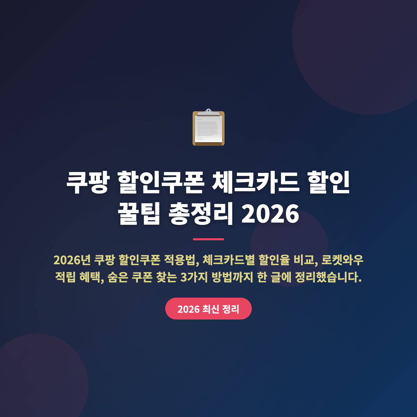 이 글에서는 2026년 기준 쿠팡 할인쿠폰 종류와 적용법, 체크카드별 쿠팡 할인율 비교, 숨은 쿠폰 찾는 꿀팁, 그리고 결제 시 할인을 극대화하는 조합 전략까지 한 번에 정리해드릴게요.