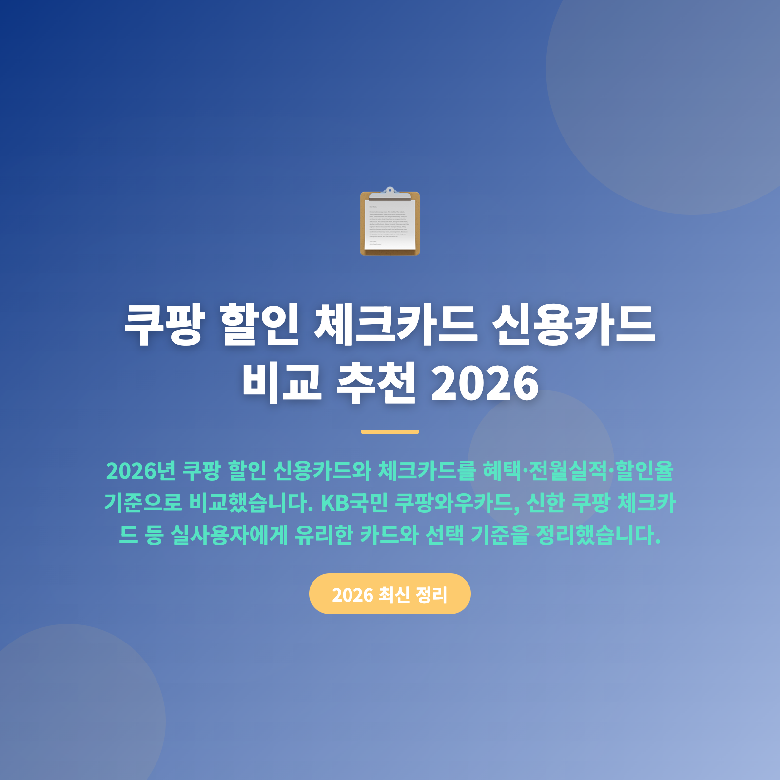 쿠팡 할인 카드는 '남들이 좋다는 카드'가 아닌 내 소비 패턴에 맞는 카드가 가장 이득이에요. ✅