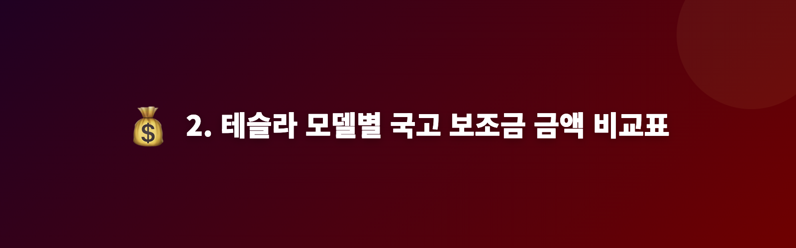 2. 테슬라 모델별 국고 보조금 금액 비교표