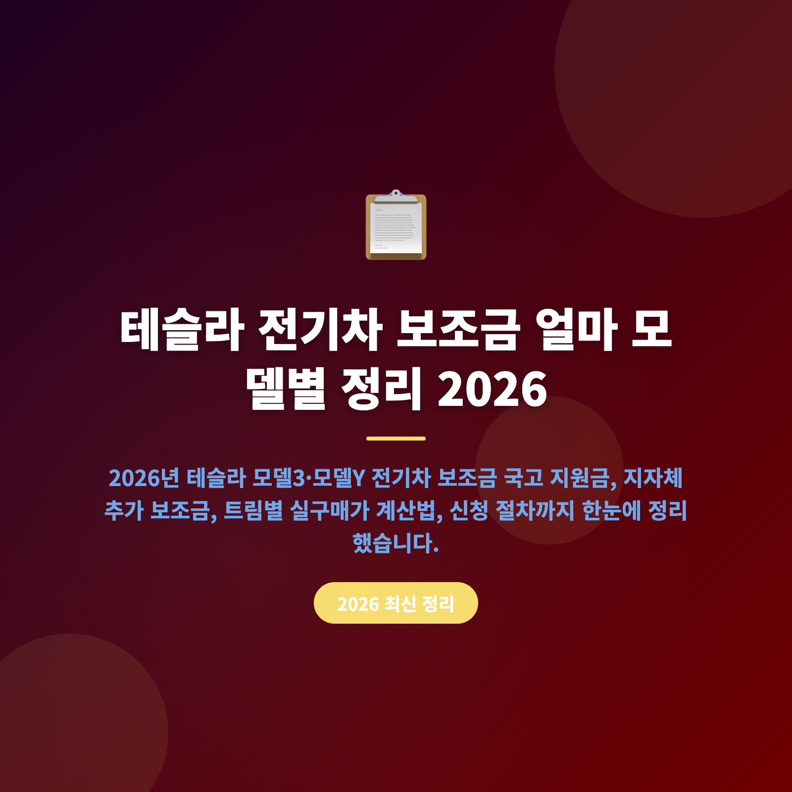 🔥 2026년 테슬라 모델별 국고 보조금 확정 금액