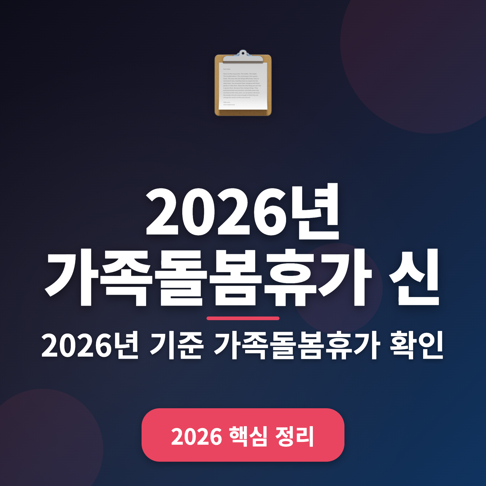 최근 몇 년 사이 가족돌봄휴가에 대한 관심이 계속 높아지고 있어요. 특히 MZ세대 직장인들은 다양한 이유로 이 제도를 활용하려는 경우가 많아지고 있는데요. 2026년 기준으로 가족돌봄휴가를 신청하는 방법과 절차, 그리고 주의사항을 한번에 정리해보았습니다. 이 글을 통해 모든 과정을 쉽게 이해하고, 적절히 활용하는 방법을 확인해보세요!