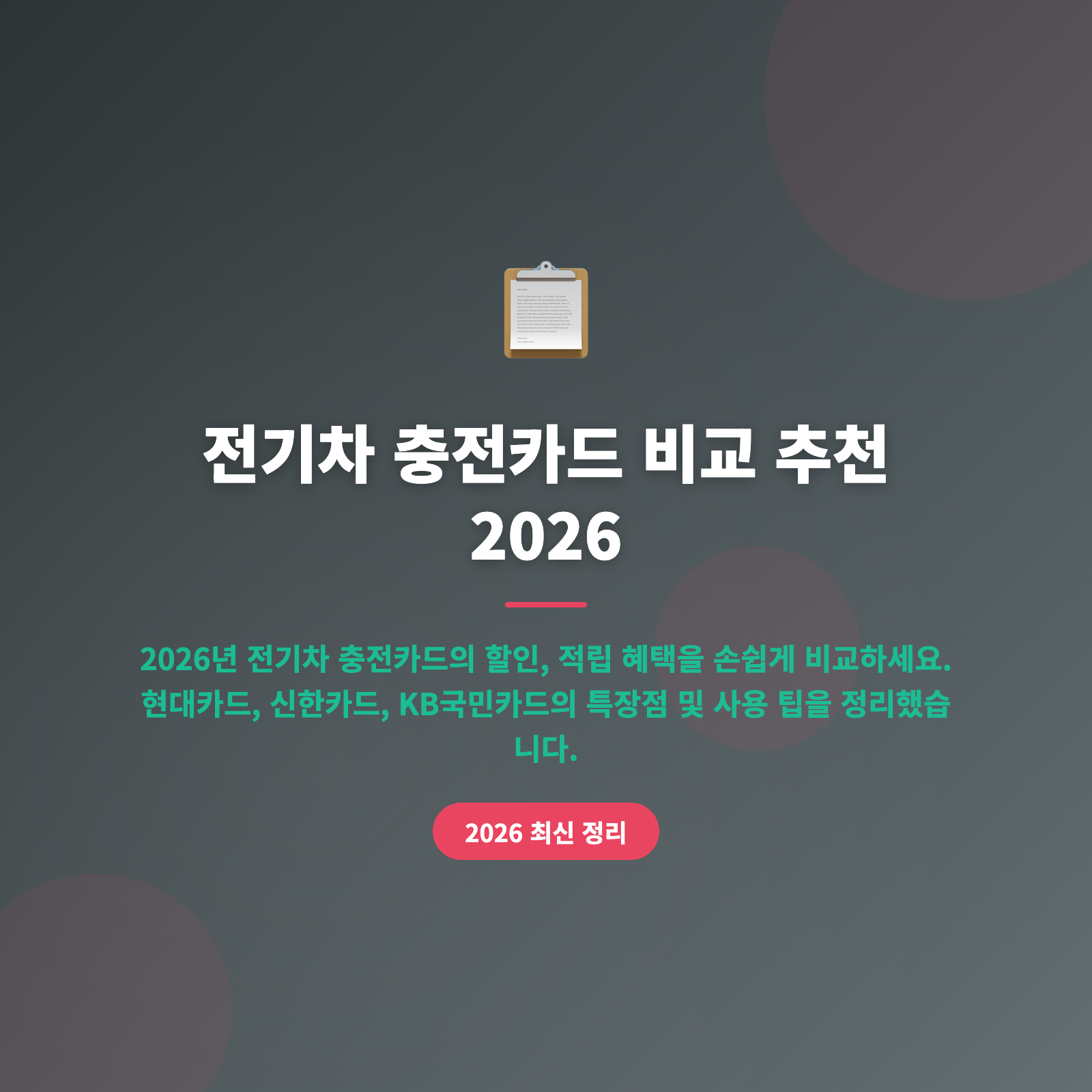 전기차의 인기가 꾸준히 높아지면서, 전기차 충전카드의 선택이 중요해졌어요. 2026년에는 어떤 충전카드가 가장 유리한 혜택을 제공하는지 알아보고자 합니다. 이 글에서는 카드별 혜택과 충전 패턴에 맞는 최적의 카드를 선택할 수 있는 정보를 제공해 드릴게요.