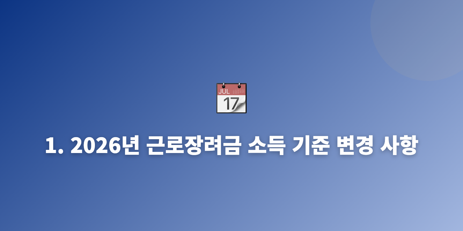 1. 2026년 근로장려금 소득 기준 변경 사항