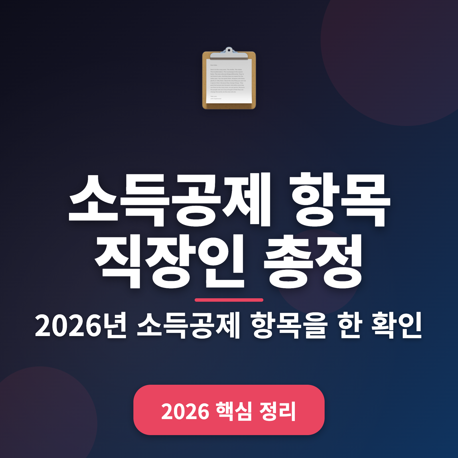 ✅ 2026년 소득공제 핵심 요약:
