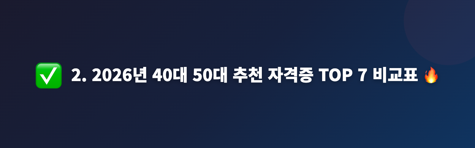 2. 2026년 40대 50대 추천 자격증 TOP 7 비교표 🔥