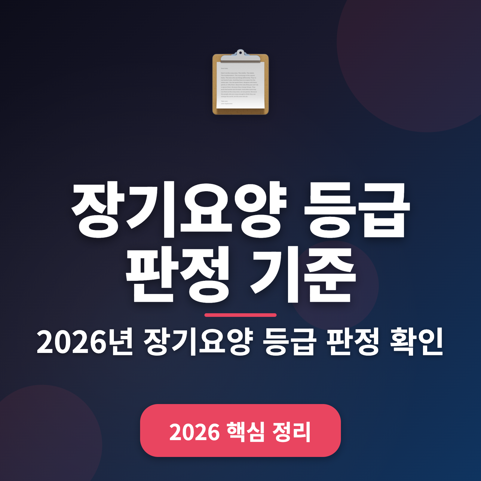 혹시 장기요양 등급 신청을 앞두고 계신가요? 이번 글에서는 2026년 장기요양 등급 판정 기준과 신청 방법을 단계별로 안내합니다. MZ세대에게 실질적인 도움을 줄 수 있는 가이드로, 이 글 하나로 모든 것을 해결해보세요. ✅