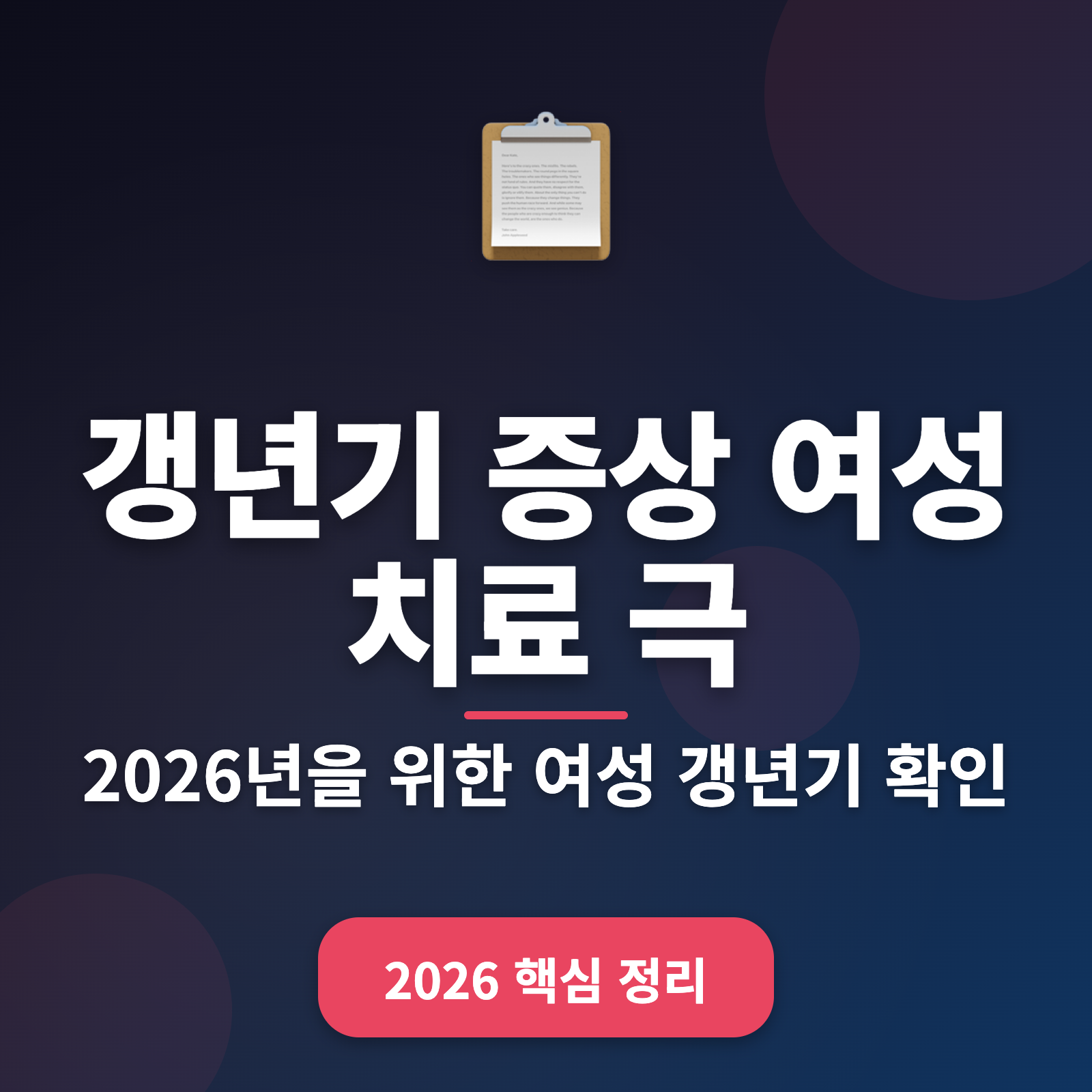 요즘 갱년기 증상을 겪는 여성들이 늘어나고 있어요. 그로 인해 많은 여성들이 치료 및 극복 방법을 찾고 있습니다. 이 글에서는 2026년 기준 갱년기 증상 극복과 치료 방법을 알아보려고 해요. 건강한 생활을 유지하기 위한 정보들을 상세히 제공하니 끝까지 읽어보세요.