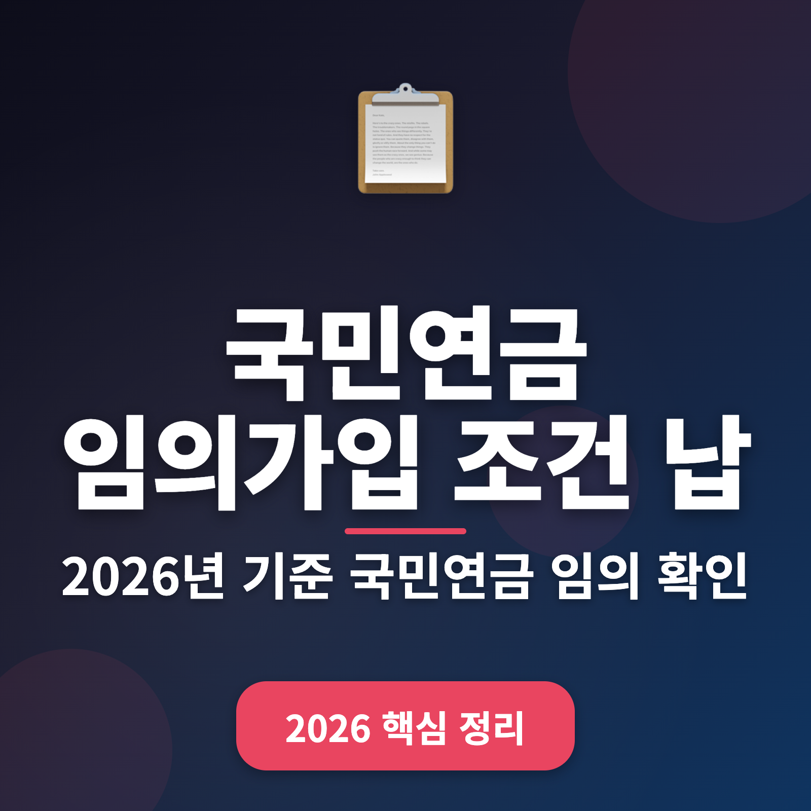 최근 통계에 따르면 국민연금의 수급 인원이 꾸준히 증가하고 있으며, MZ세대 사이에서 국민연금에 대한 관심이 높아지고 있어요. 오늘은 여러분이 꼭 알고 넘어가야 할 2026년 국민연금 임의가입 조건과 납부액을 간편하게 안내해드릴게요!