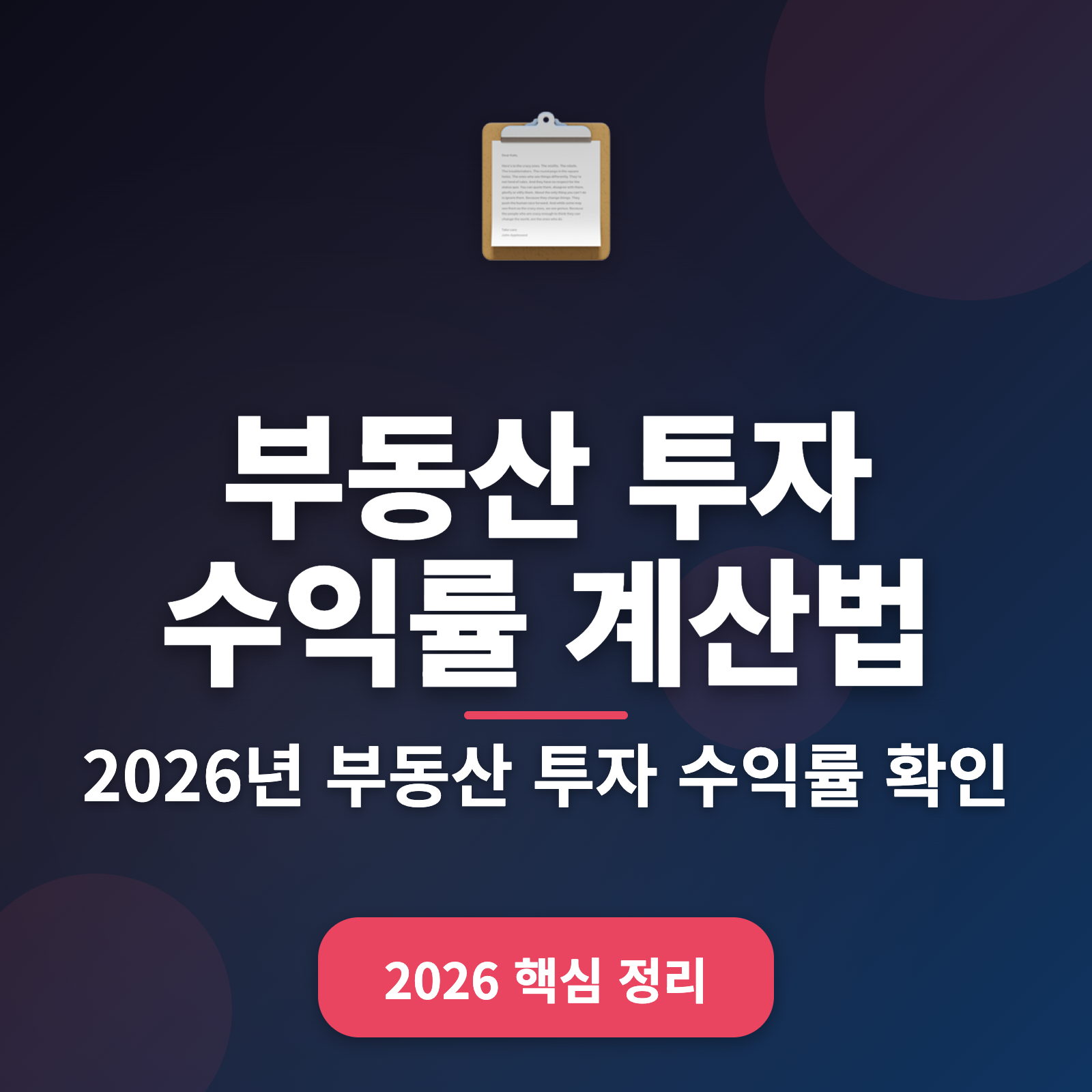 많은 분들이 부동산 투자 수익률 계산에서 어려움을 겪고 있어요. 정확한 방법을 알고 실천하는 것이 중요하죠. 이 글에서는 2026년 기준 부동산 투자 수익률 계산법과 실행 가능한 팁을 소개해 드릴게요!